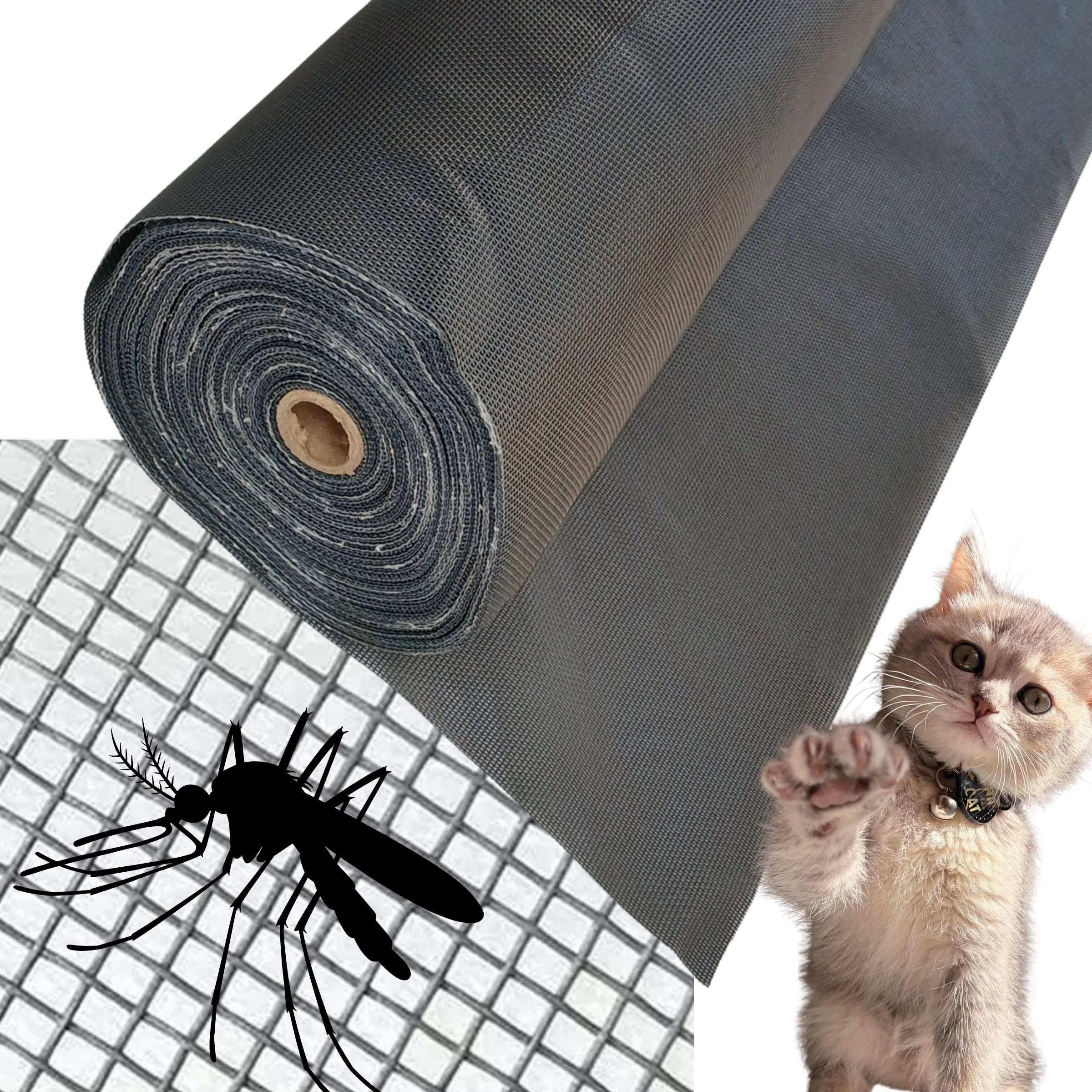 Esta tela mosquiteiro feita de fibra de vidro e PVC com sua força tem sido muito utilizada no controle de animais domésticos como gatos e pequenos cães, ao se utilizar esta tela numa janela por exemplo, ela protege contra a entrada de pernilongos e evita a saída do gatinho, podendo ter 2 utilidades num mesmo produto, deixando sua casa mais clean.